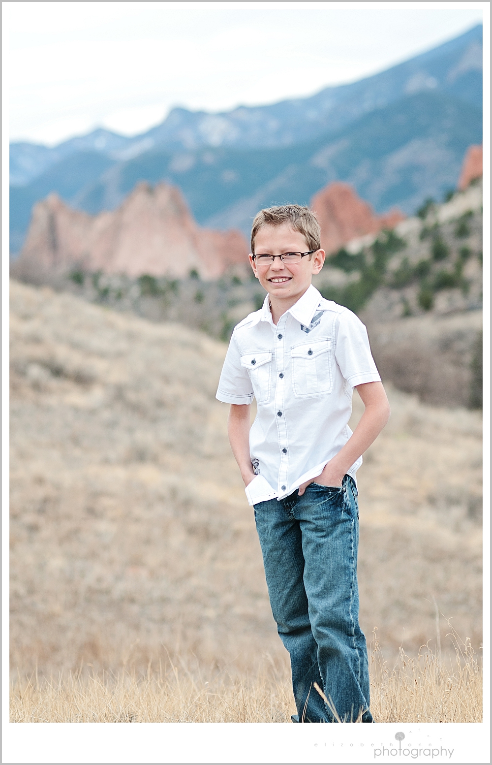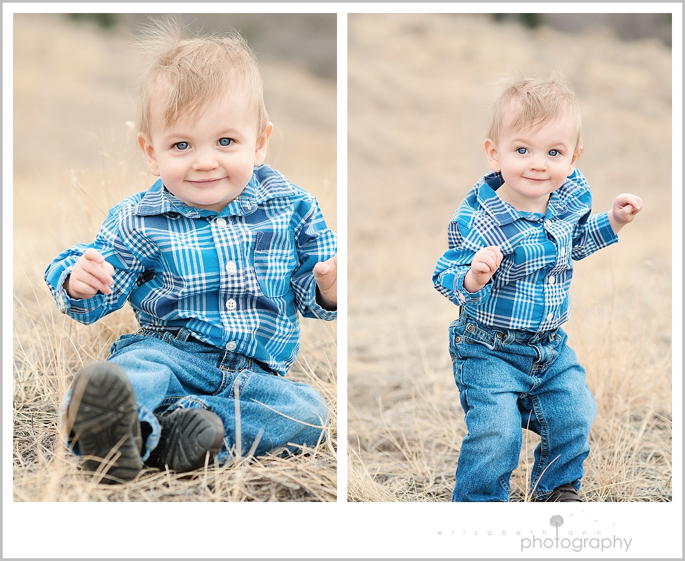 Gorgeous blue eyes looked back at me…a grin that would just make you be so inclined to smile back…ah, I was smitten the second I saw Jacob. He just turned one and is so obviously loved by his sweet family. Loved the soft western feel to this session…with tones of denim and white and cowboy boots of course. I love when a family can so easily laugh and just be in the moment. What a fun family session…we chose a spot that had beautiful views of Garden of the Gods and the foothills of Pikes Peak.