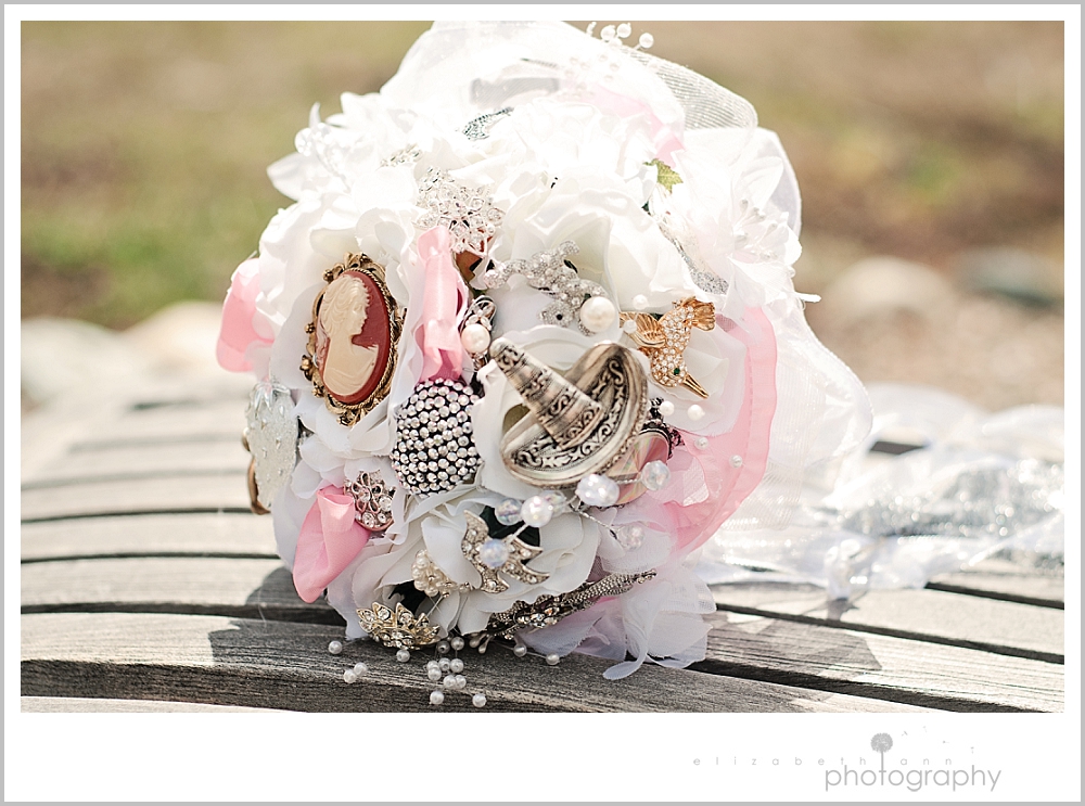 The day was stormy and called for possible snow showers.  But the sun broke out and decided to shine on this beautiful couple who chose to share their vows in a field with mountains as their backdrop. Honestly, best decision ever. It was gorgeous, personal and so intimate as it was shared with their family members only.    Details of soft pink and a bouquet made of personal brooches from Tori’s life and family put together by her grandma….GORGEOUS might I add and so unique.    Congrats again Tori and Vince!  Simply wishing you the best and hug and kiss on that sweet boy of yours…he is SO adorable and stole my heart!  Loved his little bow tie.  🙂