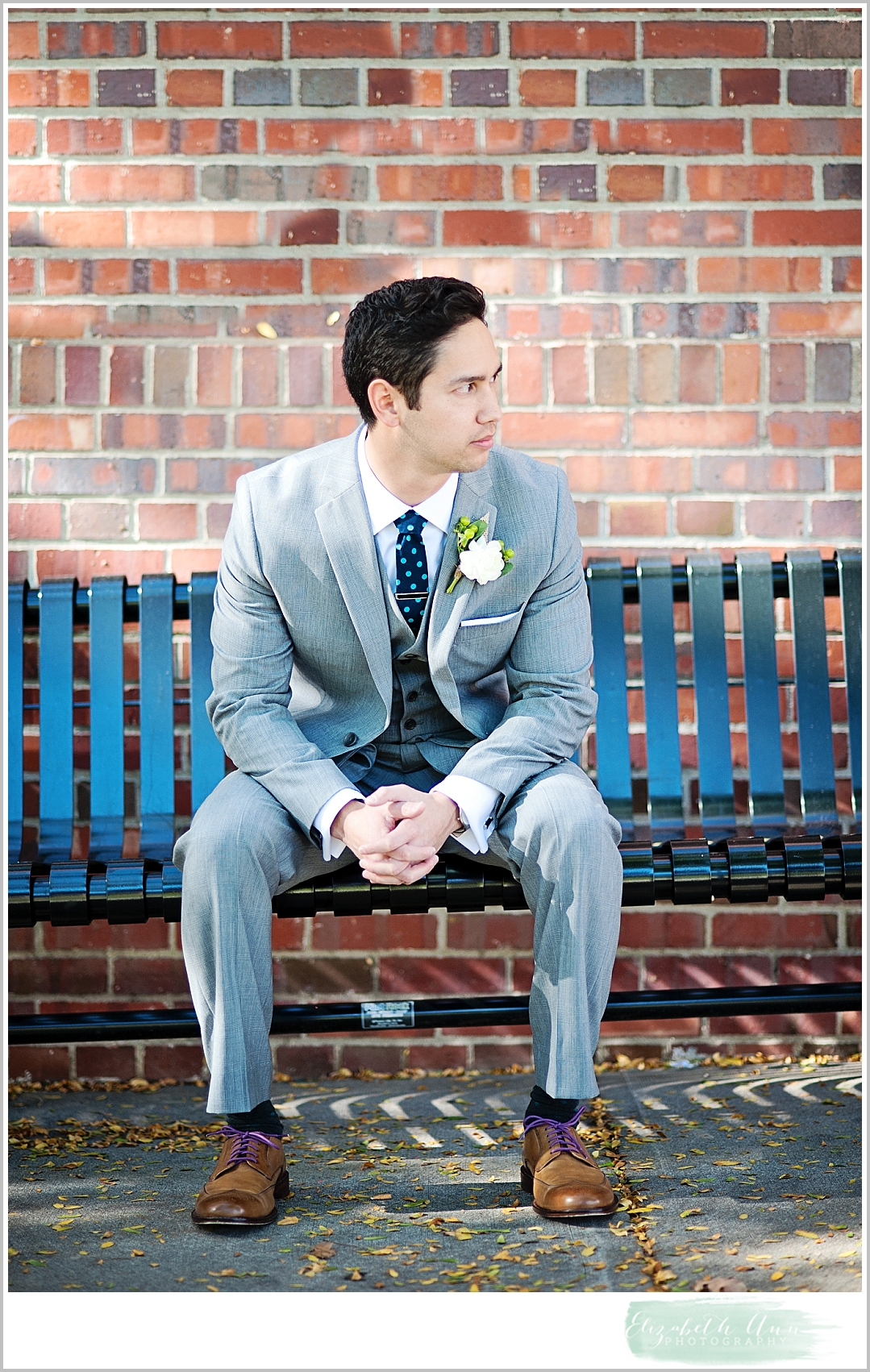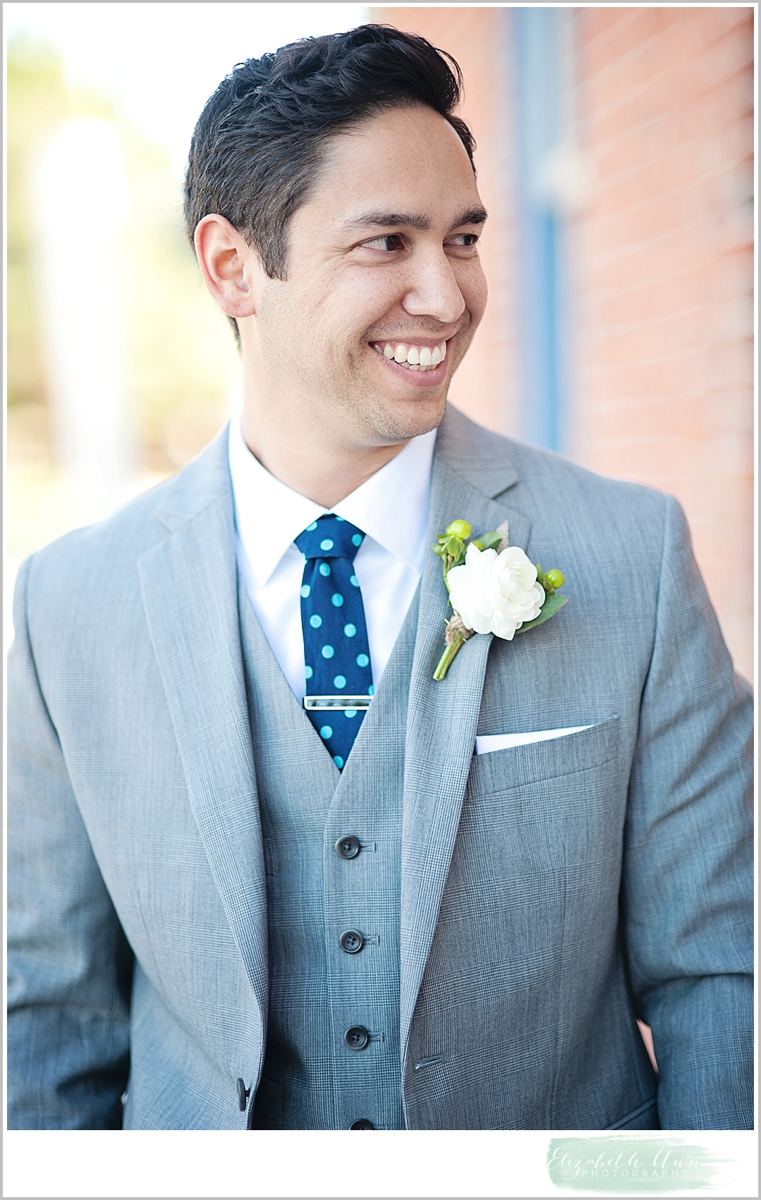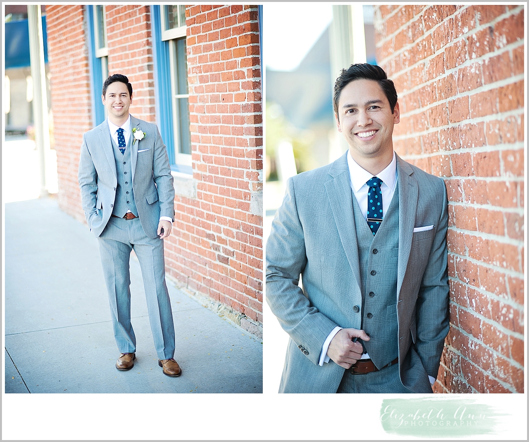 Nolans Suit: Banana Republic and the tie was made by Ingrid’s sister and dyed to match the teal in the wedding