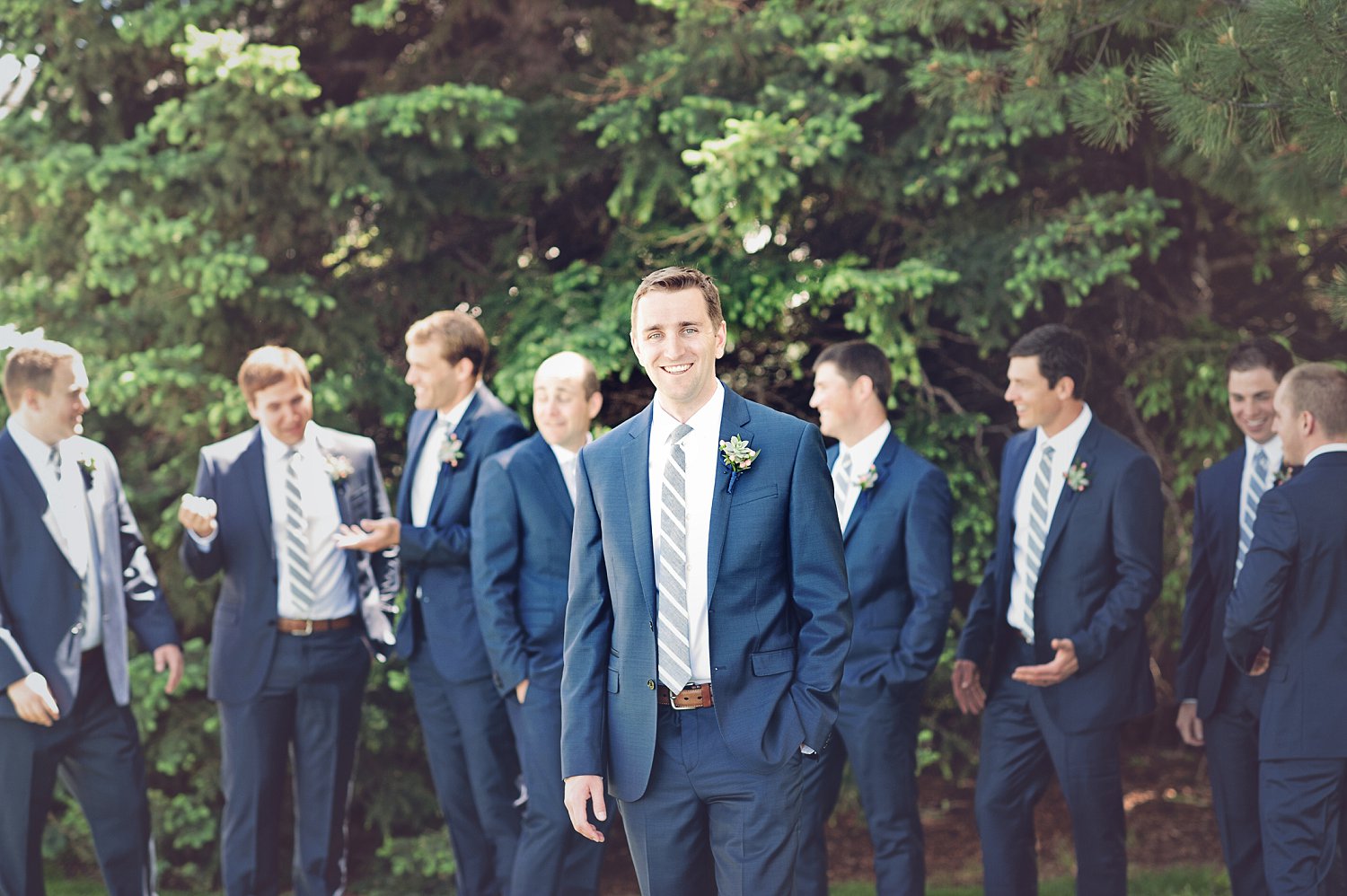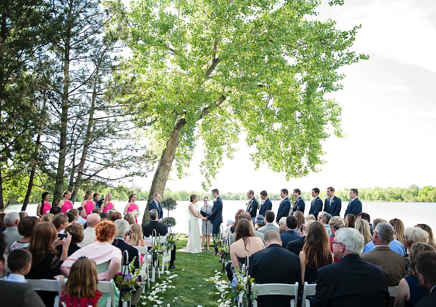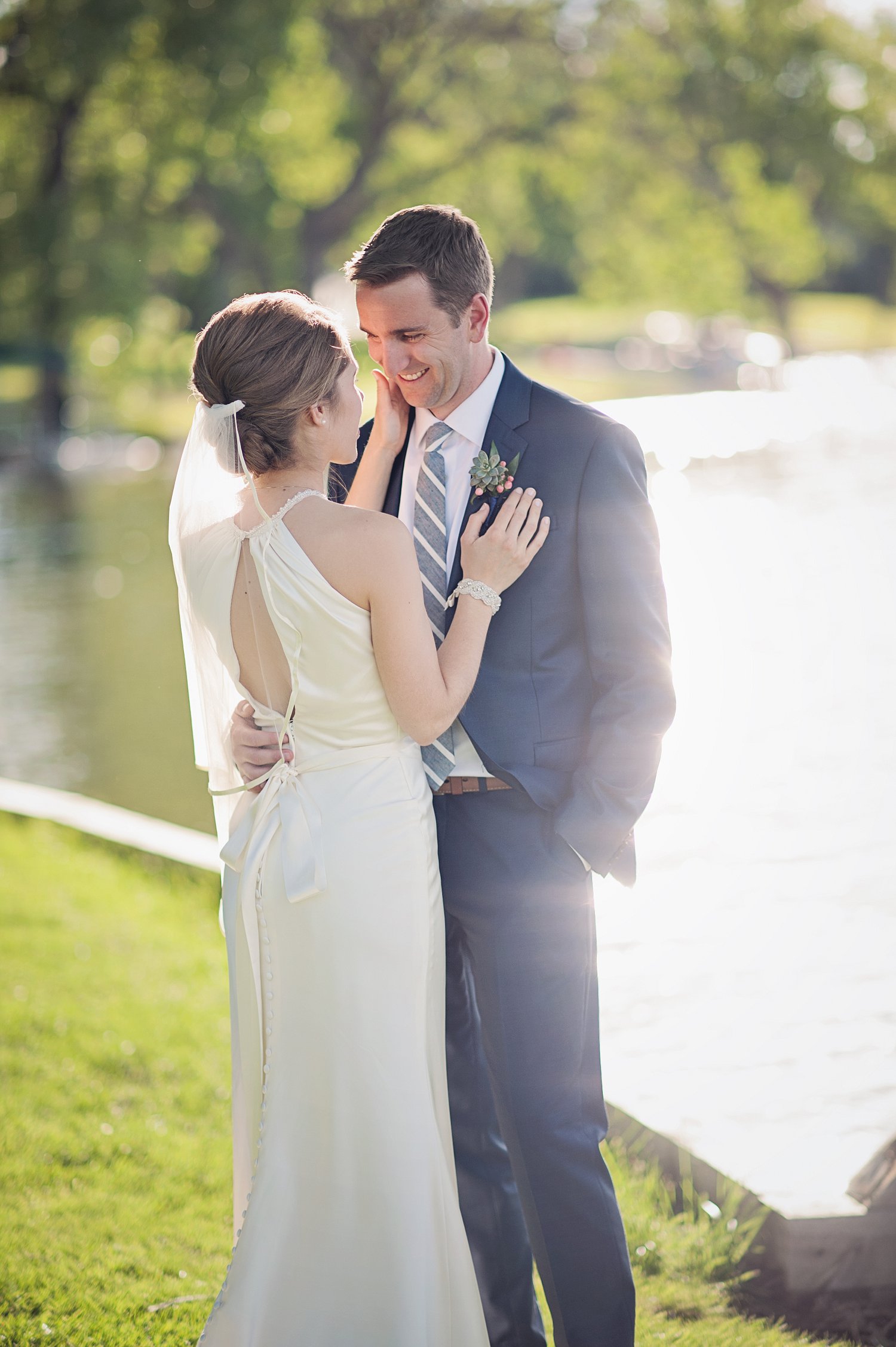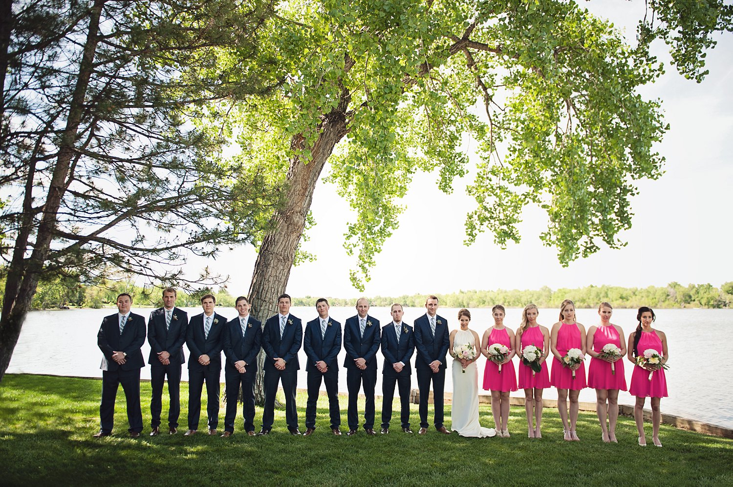 This wedding so reminded me of Father of the Bride. The elegant, beautiful soft details. The twinkling lights, big tall trees, “the navy blue” suits š …it was just pure magic. All day long. Abbey and Ben’s obvious happiness and sweet adoration of each other…simply beautiful to photograph. Also, the fact that it had been raining for 24 days straight and decided to NOT rain on their wedding day…I mean the sun had to shine on this couple. š I was in love with all the gorgeous cottonwood trees surrounding the lake.