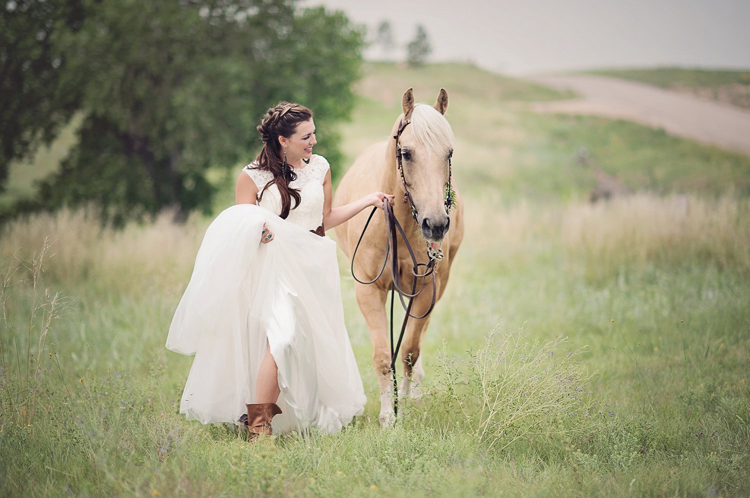 Ahhhh, this was a fun day.  Let me just say its hard work to do a styled shoot lol.  Add in gorgeous 1500 lb horses and the amazing dresses from The Bridal Collection…being careful was the up most importance.  Having April know how to handle horses (yes a real rodeo girl…my daughter absolutely ADORES her) was an amazing added bonus.  Not only that but her Mom came out and helped with them as well.