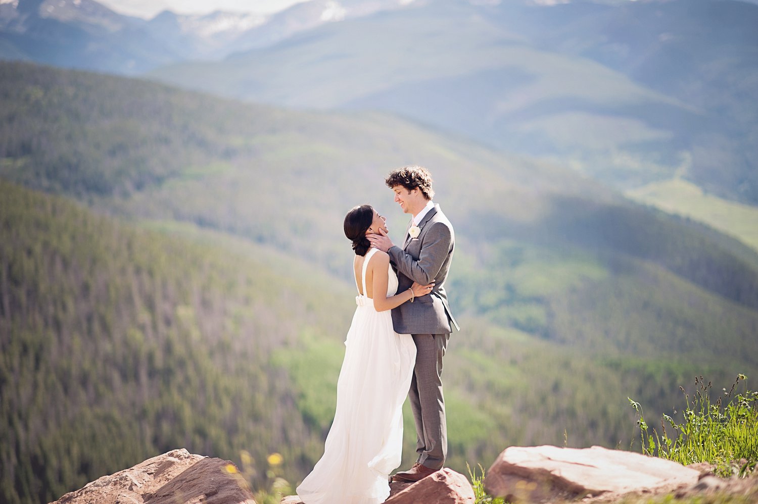 If you know me…you know I love details..seriously…its kind of my thing for weddings.  I love seeing what interests each bride.  And I loved the personal invite that Jessa personally wrote out…ummmmm, AMAZING handwriting.  Not only that her friend helped with table set ups, cards, and personal boards set up through out the wedding and reception.  Beautiful prints with even more gorgeous handwriting.  Beautiful.   Jessa chose a beautiful dress from Emma and Grace Bridal that Jen and I were simply in awe of.  It fit Jessa perfectly…blowing in the wind at the top of Vail…seriously, she took my breath away.   Which brings me to our ride up to the top of Vail mountains…ummmm, I know we live in a cool state but seriously, this one takes the cake as far as mega epic mountain views.  360 degrees of gorgeous Colorado on full display…add in Jessa and Rick, their sweet happiness and their family and friends and lets just say I was in photographer heaven.