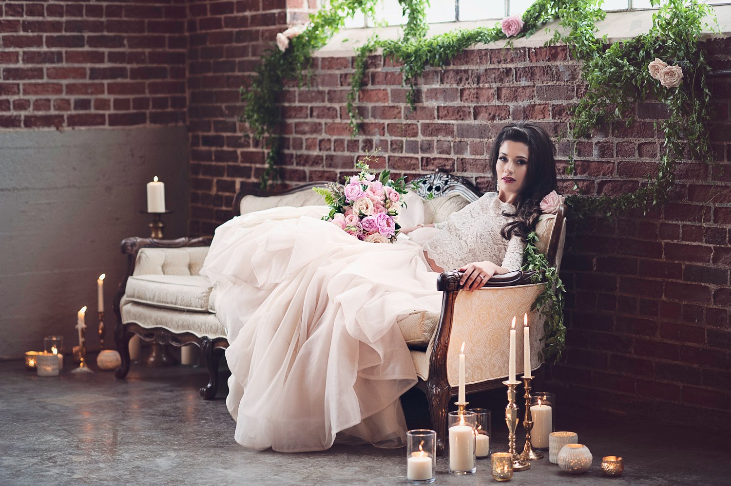 This session was dreamed up by Rebecca and her team over at Novelty Bride. And they were so amazing to work with. The creativity was beautiful to see. Details such as soft pink tones, beautiful floral bouquets, roses trailing greenery on a brick wall, a table setting with lace, chocolates and arrows. And then Alejandra, simply stunning in her Martina Liana Gown from The Bridal Collection. I was so honored to have been asked to photograph such a unique Valentines Day Bridal session by Novelty Bride. So many talented people behind this session! To see Novelty Bride’s Blog post on this click on this link: http://noveltybride.com/blog/pretty-in-pink/