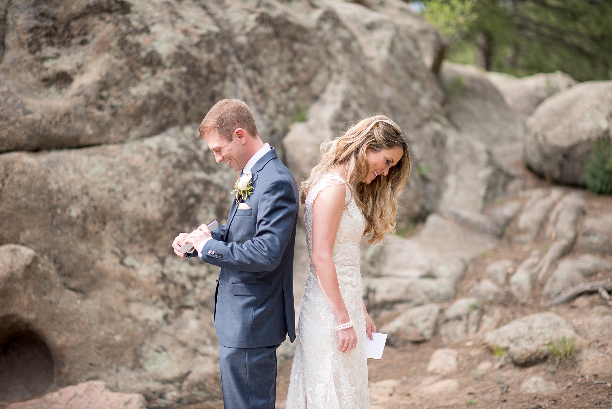 Evergreen is simply breathtaking. The way the lake house sits inside the valley surrounded by mountains and a beautiful lake…stunning. Its a stunning venue and I love getting to work here every time. I love that you can photograph it different every time you approach it. Sara and Nate decided on having a first look and I got there early the day of to look for a beautiful spot for them. We found a small park up the road that was perfect. Surrounded by the forest and big boulders, I watched Sara and Nate stand back to back and read their personal letters to each other. I loved the way they made each other laugh and smile all day long. One of Nate’s favorite things about Sara was her laugh and I loved that she is the type of person to smile so easily. She makes everyone feel so incredibly loved where ever she goes. When Nate saw Sara for the first time…you could tell he was absolutely speechless. Yes, to men who so easily express their feelings and emotions…Nate did not hold back and proceeded to make Sara feel like the most beautiful woman in the world. So touching to photograph them.