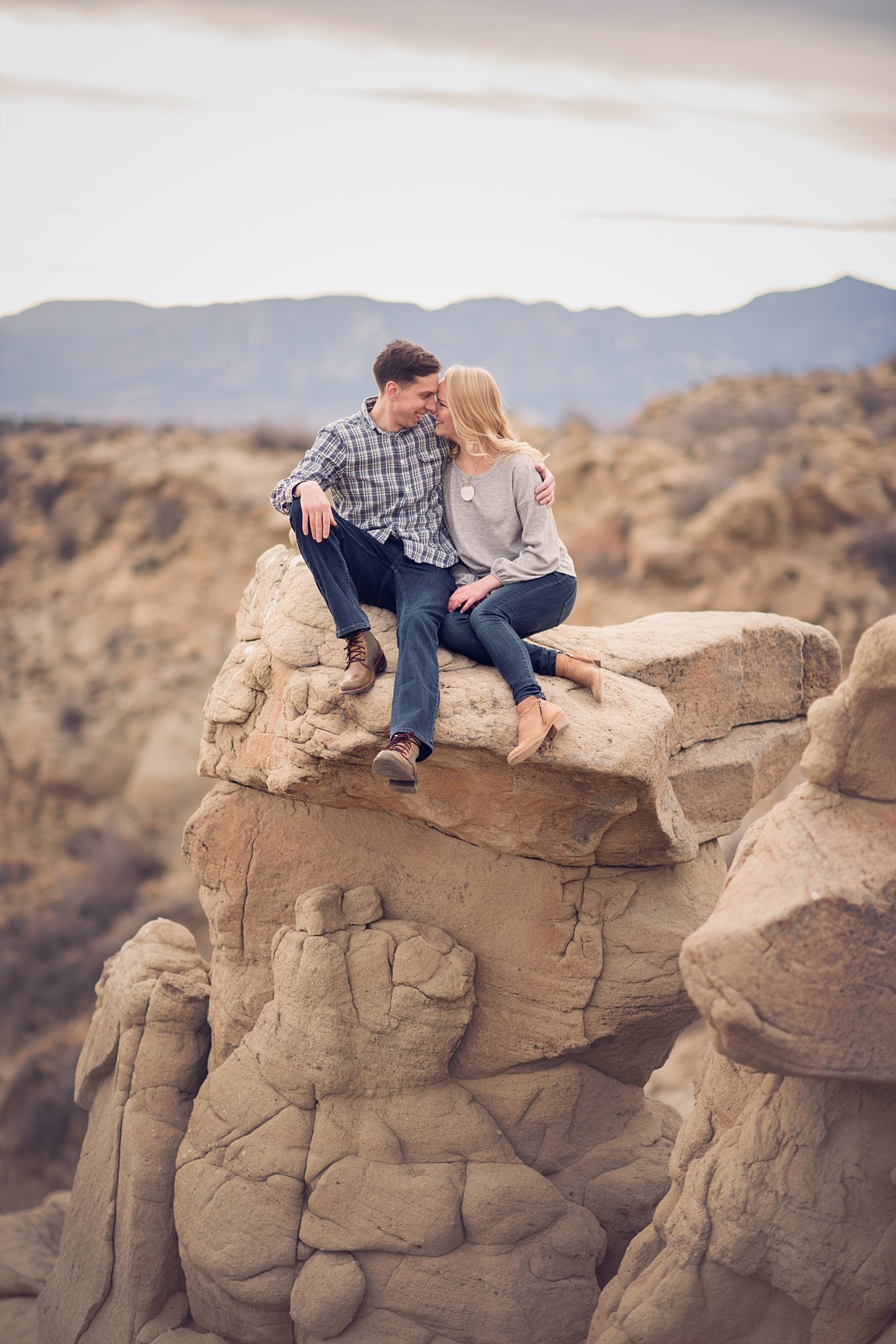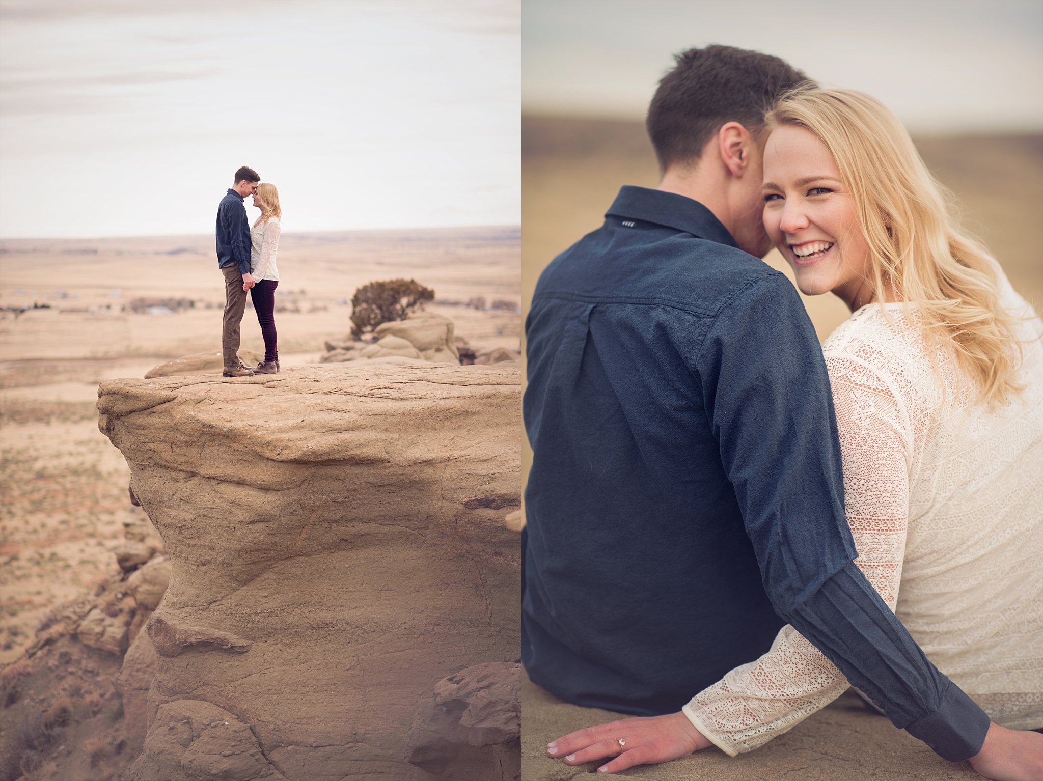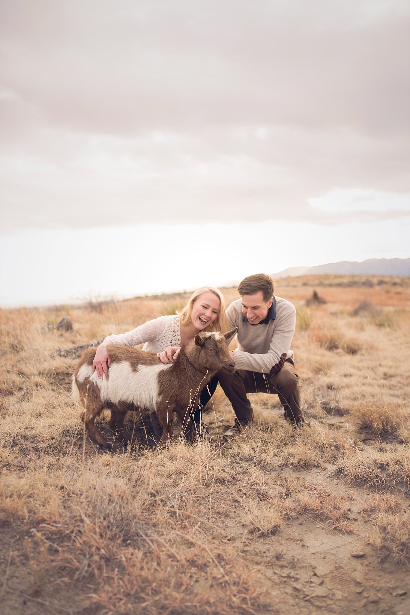 At the last minute we decided to change locations for Chelsea and Aaron. Aaron remembered this place he used to play at as a kid with his friends, The bluffs they called it. The neighborhood kids would hike a few miles in to these flat lands and in my opinion scary drop offs haha…I’m thinking maybe the moms didn’t know just how dangerous some of the spot were lol. But they would play capture the flag and then hike back home for dinner. That to me sounds like the best childhood with some amazing memories. So it made it even more special to have Chelsea and Aaron here for their engagement photos. We took their friends family’s ATV (Alan, THANK you for being so incredible that day and helping us) and headed to these beautiful bluffs that overlook Colorado Springs. The terrain reminded me of Moab with its soft golden tones. Literally took my breath away and it felt like I was getting to photograph Colorado Springs best kept secret. I’m actually really thankful how hard it was to get to this spot. It seems every place in Colorado becomes so overrun that its hard to find places for quiet anymore. The only time I saw anyone was when we were hiking back and a family was walking their goats….UMMMMM say what!?! Haha…Chelsea and Aaron wanted a quick photo with Cinnamon the goat. Overall, I’d say this session was one of my absolute favorites to date. I loved how unique and adventurous this one felt. Bring me ALL the adventure couples…yes, please. I’d love to share a few of my favorites. Chelsea and Aaron, I can not wait for your beautiful wedding this year!