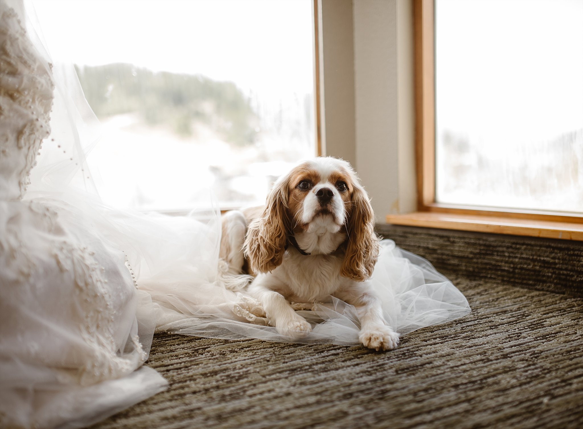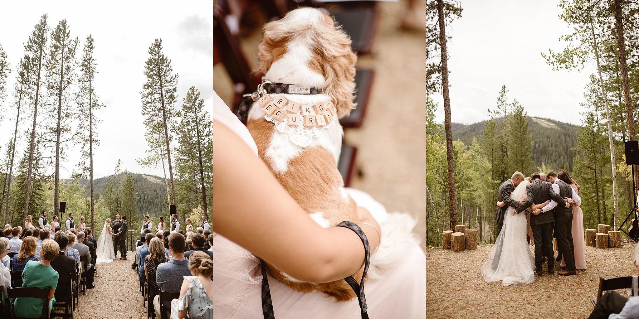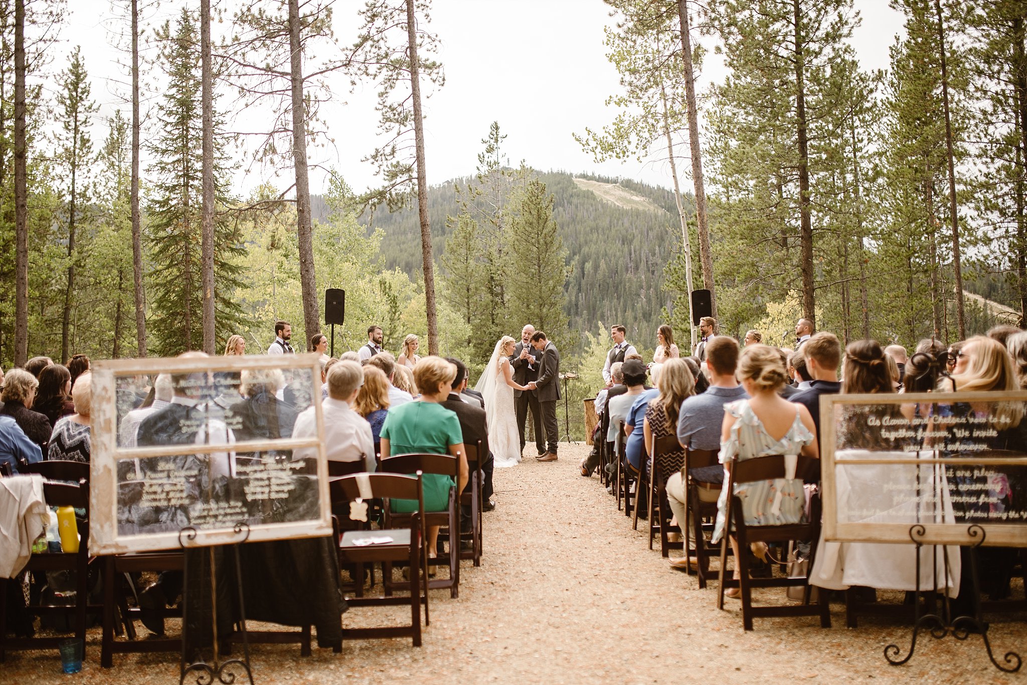 Aaron and Chelsea chose to have their first look overlooking the gorgeous continental divide. When Aaron spun around and saw Chelsea for the first time you could absolutely feel how happy and in love this couple is. Just beautiful to see that precious happiness. And I loved that they had family and friends standing up for them during their day AND that they had men and women on both sides for their bridal party. I hope I see more of that next year. I love that slowly we are seeing couples pull away from standard must do this and that for weddings and instead are embracing how they want their day to look. YES to this couples. OHHHH and their ring bearer and flower girl…pretty much the cutest ever. I love that Chelsea and Aaron had an activity box for them for after they walked down the aisle. Fur babies for the win at weddings!