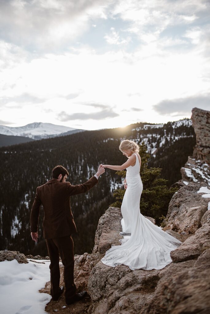 This was a day for jaw dropping beauty and the sweetest of emotions expressed all day. Chelsea and I had an incredible day celebrating with Kelsey and Kory and all of their family and friends. Kelsey and Kory opted to have a first look at Echo Lake, just past Blackstone Rivers Ranch. And while the day might have been cold and windy it was gorgeous there. When Kory turned and saw Kelsey and she had the biggest smile on her face…gosh I loved how expressive these two were. They signed their marriage license with their close friend (also officiant) right on the rock near their first look. I love that it will always be a place they can go back to and bring them right back to that moment. From there we headed back to Blackstone Rivers Ranch for portraits with all their wedding party. And what a gorgeous venue to get married at. I loved the creek running right through the main walkway. It has a beautiful covered bridge and a spot for guests to sit near the creek. They had set up heaters all through out as well as blankets for guests to stay warm. The floral work on this beautiful Colorado Wedding was AMAZING. Truly a dream to photograph and see. I loved the aisle of pampas grass and the ceremony arch of roses. Then you moved into the tent and the sweeping baby’s breath, vines and beautiful white flowers that dripped down the middle of the tent where the head table was was…magic. Just magic. I loved the way it looked at night with market lights and candles all through out.